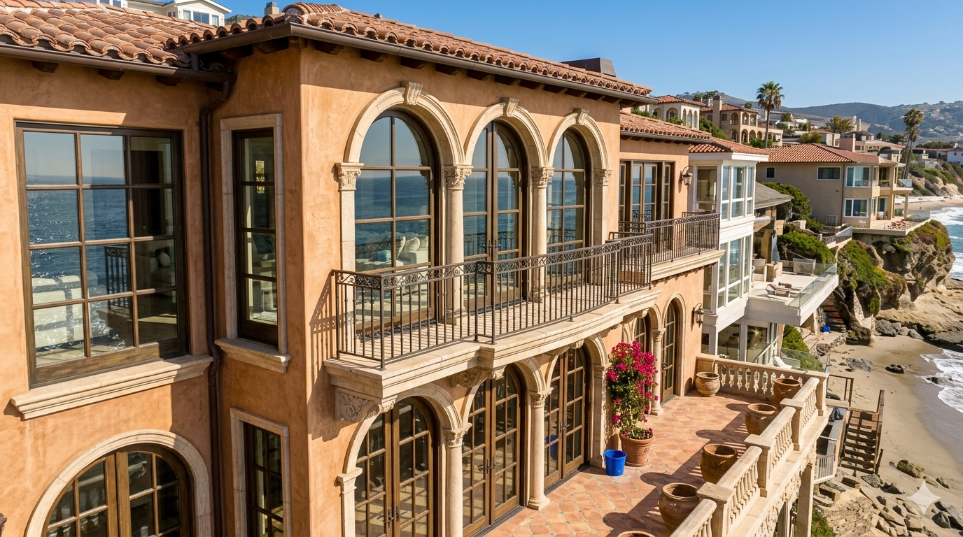 Laguna Beach homes sit right in the path of ocean air, salt spray, and coastal weather — which means windows get dirty faster here than almost anywhere else. Hard water spots, salt film, and mineral deposits build up quickly and can permanently etch glass if left untreated.